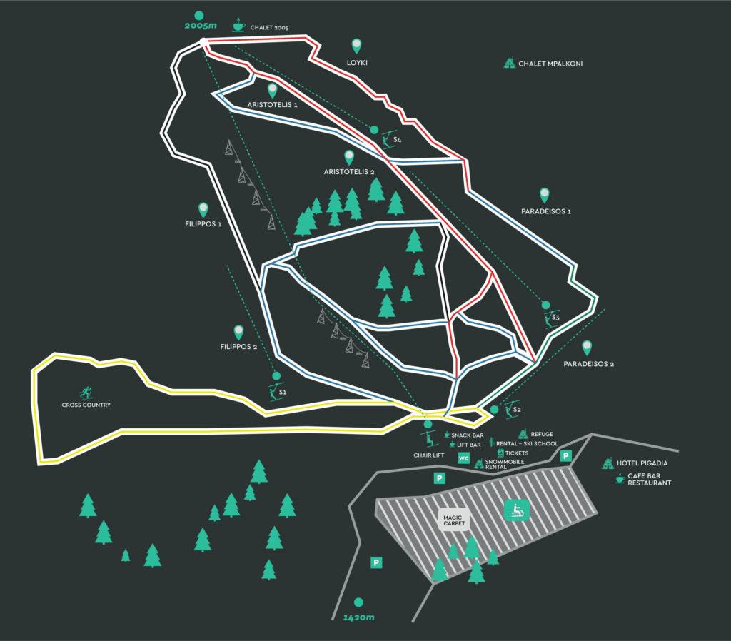 Plan des pistes 3-5 Pigadia – Naoussa Saison 2024/2025