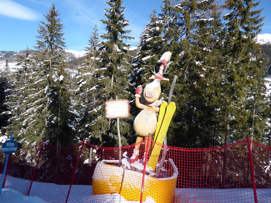 Près du télésiège double Raut à Versciaco se trouve la Forêt des Contes. Lors de la descente facile à travers la forêt, on découvre de nombreux personnages cachés parmi les arbres.
