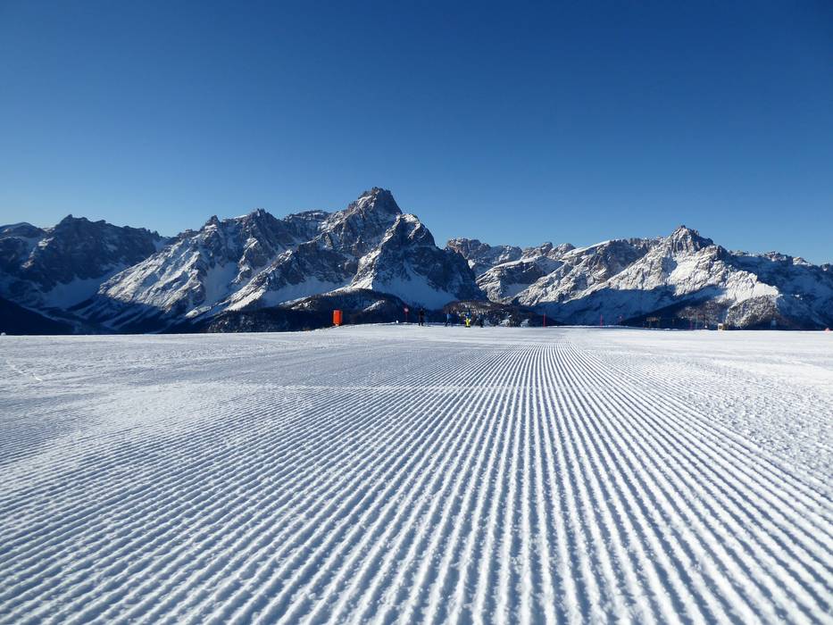 Vue imprenable depuis le Helm sur la vallée de… Début de la journée de ski au Helm La piste de liaison via le Stiergarten Liaison Signaue-Drei Zinnen Magnifique piste du Stiergarten