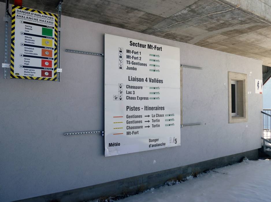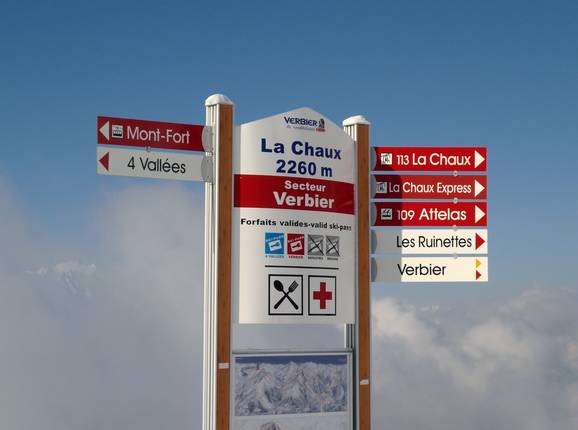 Indications de directions (plans, panneaux informatifs, signalisation) et sécurité sur le domaine skiable 4 Vallées – Verbier/La Tzoumaz/Nendaz/Veysonnaz/Thyon
