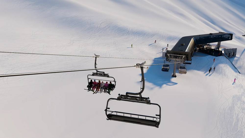 Téléphérique monocâble composé de sièges à 6 places et de cabines à 10 places avec sièges chauffants