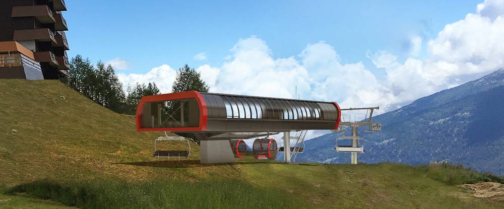 Téléphérique monocâble composé de sièges à 6 places et de cabines à 10 places