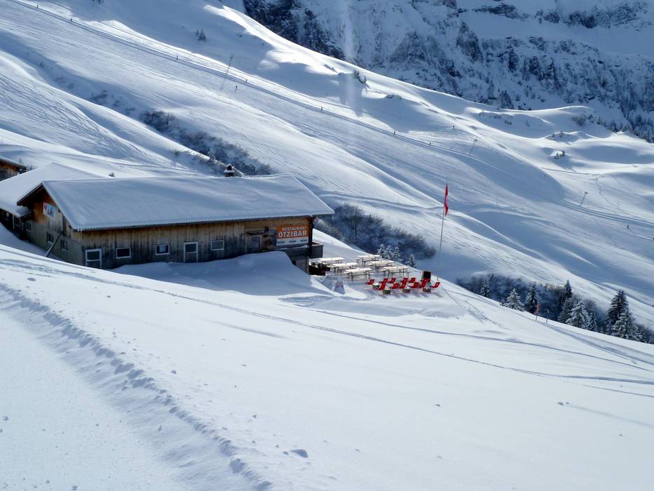 En été, les vaches sont à l’étable au Chüebodmi, et en hiver, on s’y arrête pour une pause. Le propriétaire, Peter, a épousé la Japonaise Yasuko, et ainsi, des sushis frais sont proposés sur la piste. Le Japon rencontre la Suisse. Bien sûr, des spécialités suisses sont également servies. Par beau temps, la terrasse ensoleillée vous attend.