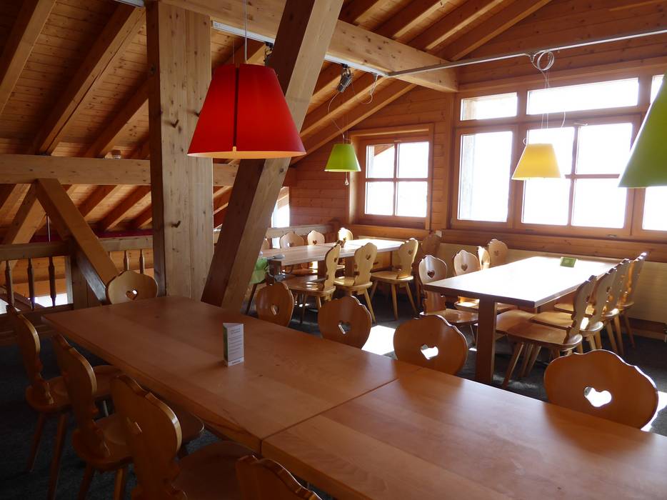 La Standhütte propose une salle rustique avec un restaurant panoramique avec service, ainsi qu'une terrasse ensoleillée vraiment magnifique offrant une vue panoramique sur les montagnes valaisannes à Lenk. Très douillet et convivial. Juste à côté, sous la même direction, se trouve un restaurant self-service moderne et épuré avec une grande terrasse.