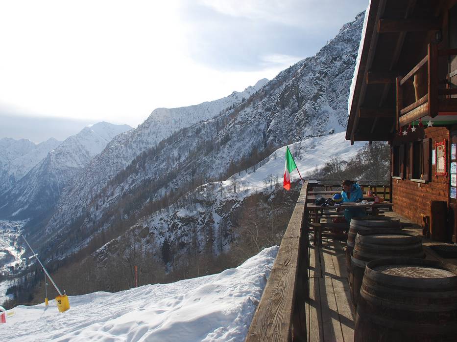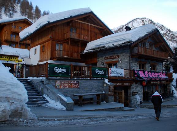 Le seul bar après-ski avec musique live se trouve un peu au-dessus du village de Champoluc. Comme la piste n'est plus accessible après 17h, le propriétaire a aménagé un petit sentier à travers la forêt jusqu'au parking.