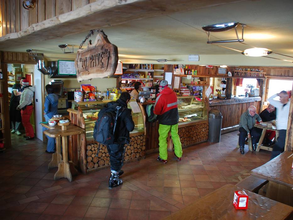 Petit chalet très authentique avec des meubles originaux, conçus par le propriétaire lui-même, tout comme les sculptures en bois amusantes. On y cuisine des pâtes et de la polenta. Vous y trouverez également des soupes, des salades, des steaks ainsi que des desserts faits maison. Depuis la terrasse, on profite d’une belle vue sur le Funpark.