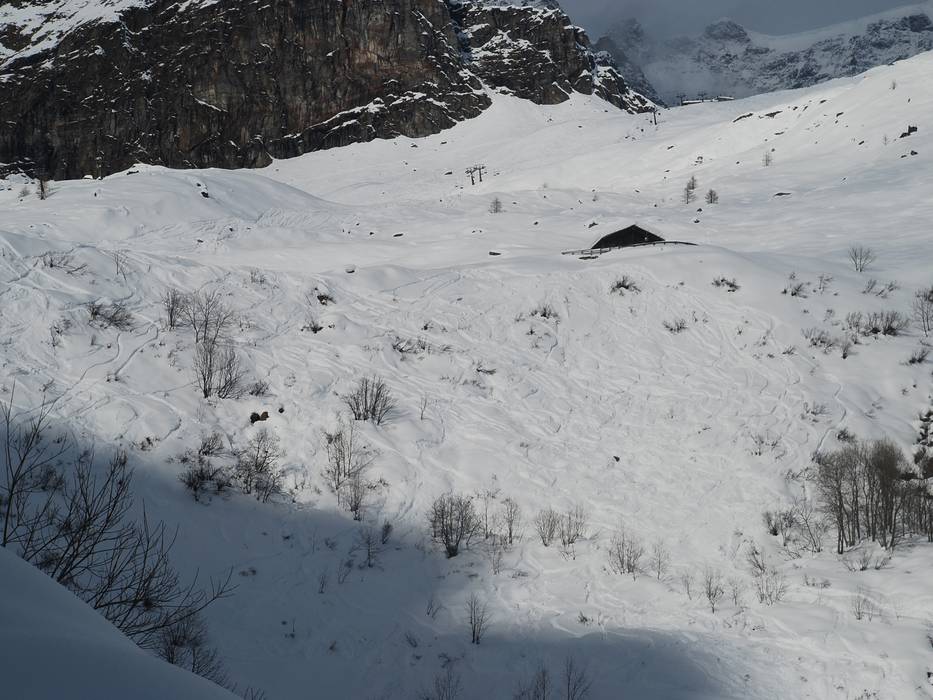 Pour ce court tronçon noir, il faut passer pas mal de temps dans les remontées mécaniques (téléphérique de Stafal à St. Anna et télésiège jusqu’au col de Bettaforca), c’est pourquoi on profite généralement de la Nera presque seul.
