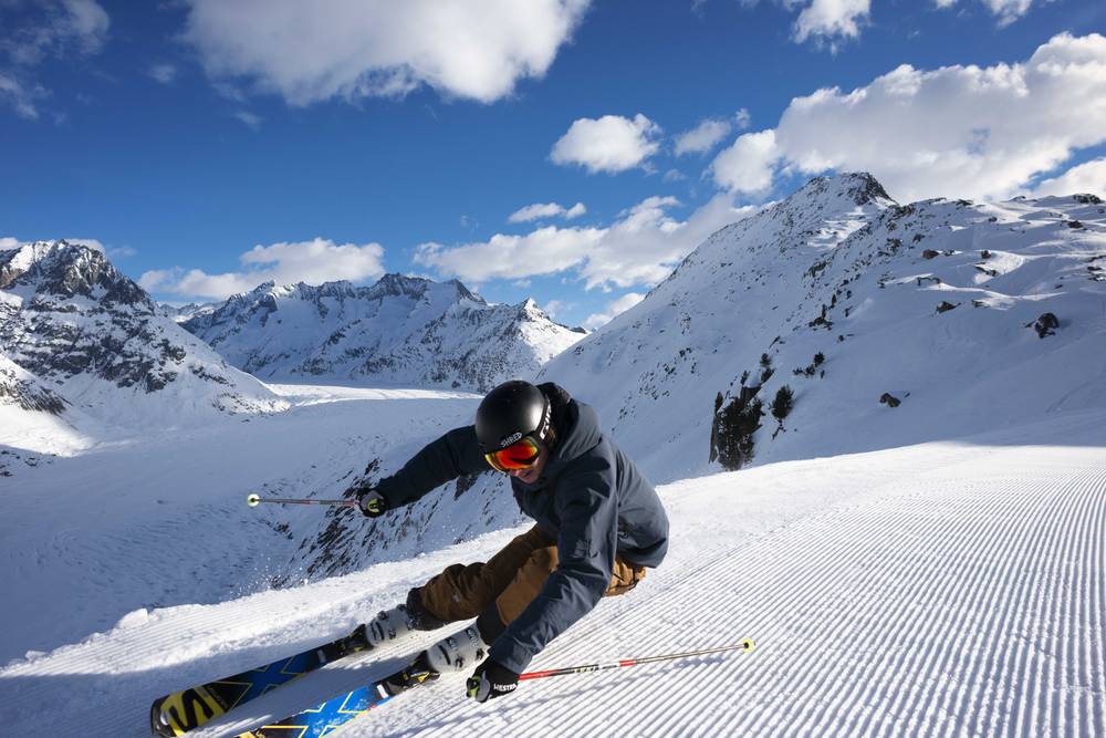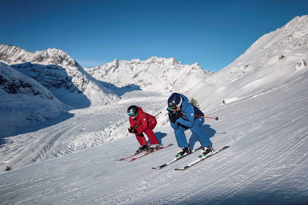 Air pur, neige craquante, soleil radieux du matin au soir et belle vue dégagée sur les beaux sommets de 4 000 m du Valais : Aletsch Arena – vivez la plus exaltante sensation de liberté des Alpes.