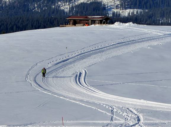 La piste de ski de fond part de la station supérieure de l’Almbahn II et traverse la Loferer Alm.