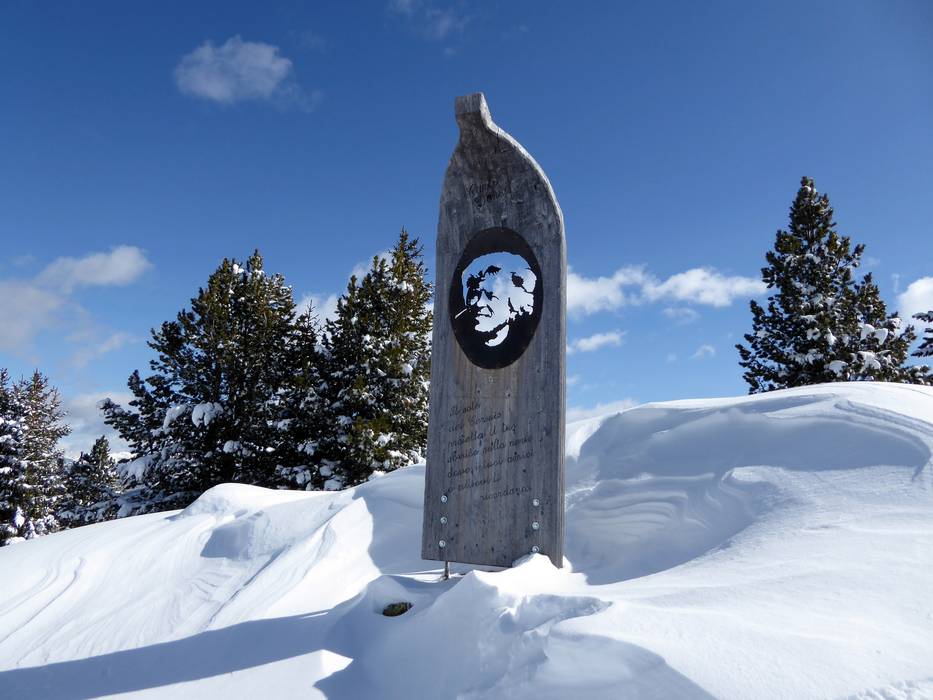 Vue depuis la station supérieure en direction des… Le monument au sommet du Paion est dédié à Carlo…