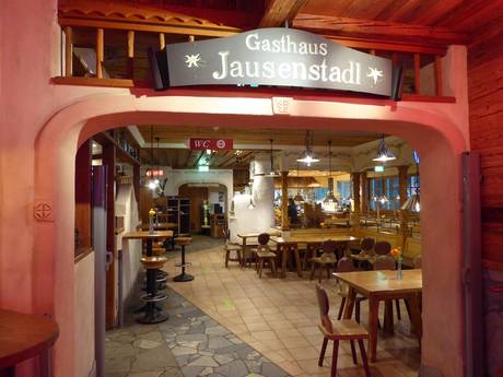 Dîner sous des bardeaux de bois authentiques vieux de 300 ans avec vue sur les pistes. La gastronomie alpine haut de gamme propose un large choix de steaks et d'escalopes, ainsi que des desserts typiques comme le Kaiserschmarrn. Une excellente sélection de vins et de spiritueux est également disponible.
