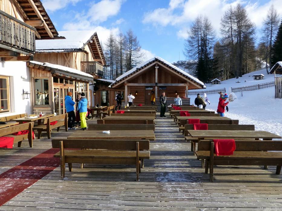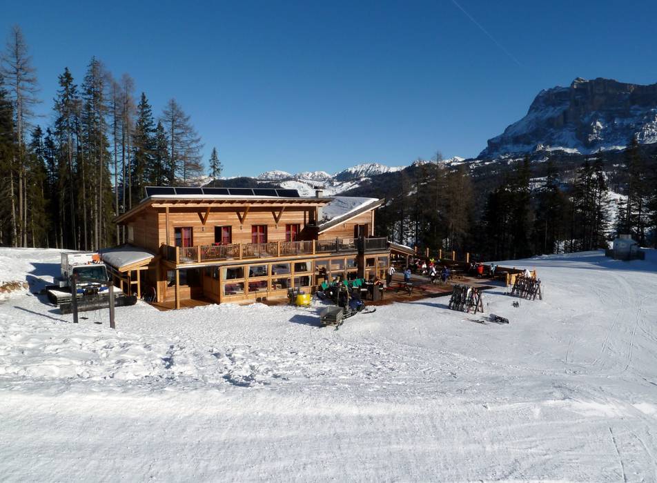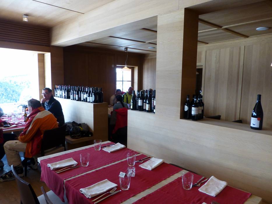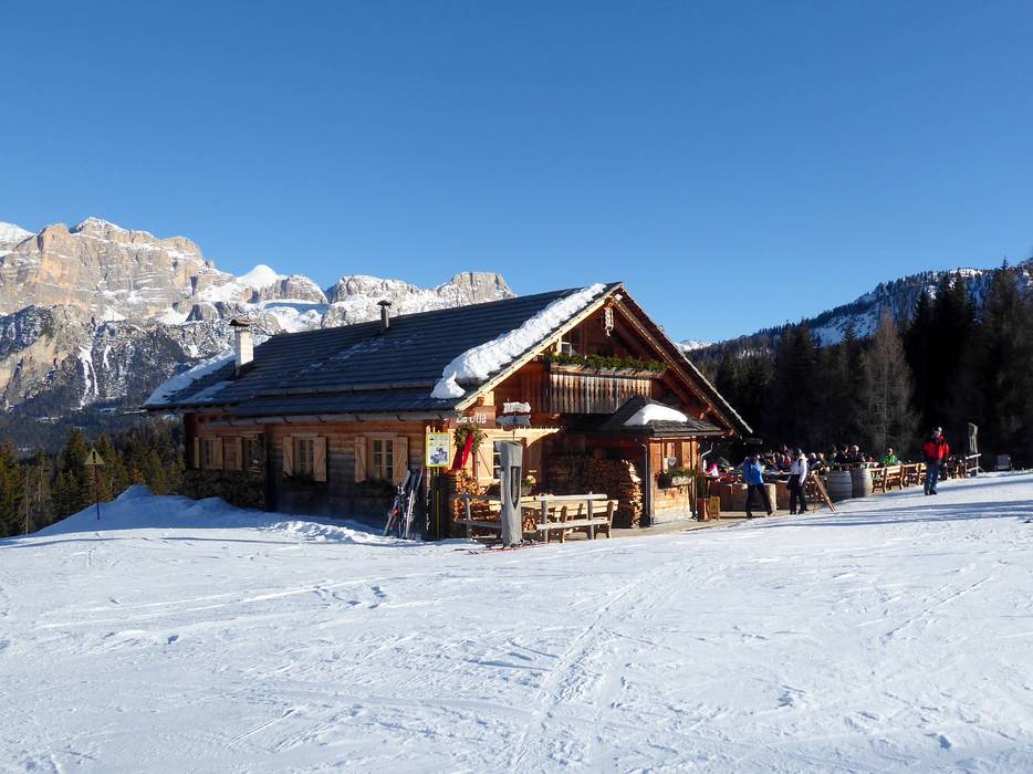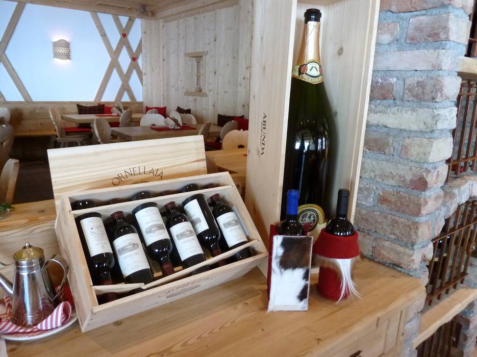 La cabane rustique est une halte gourmande prisée des skieurs. Sur la grande terrasse ou dans les stües ladines, on peut savourer des plats locaux typiques accompagnés d’un bon verre de vin. De plus, la Vinotecca séduit avec ses vins raffinés.