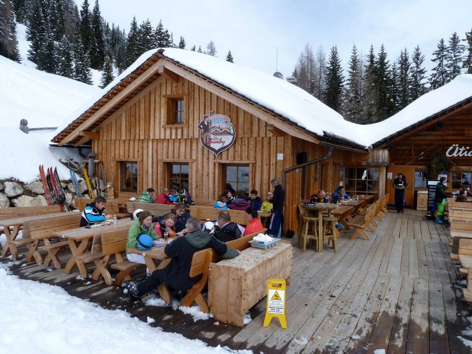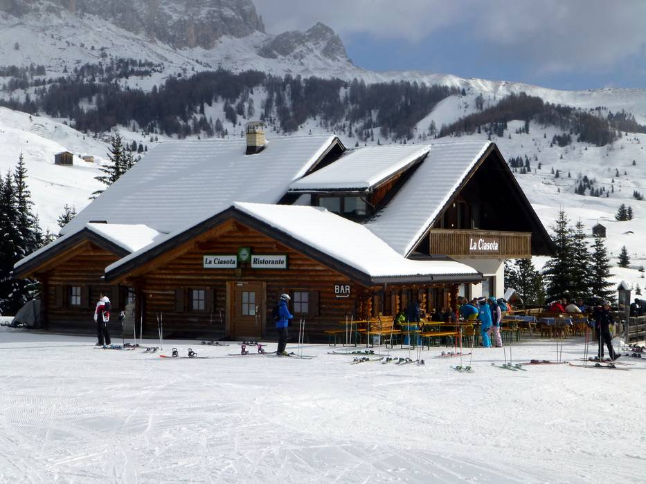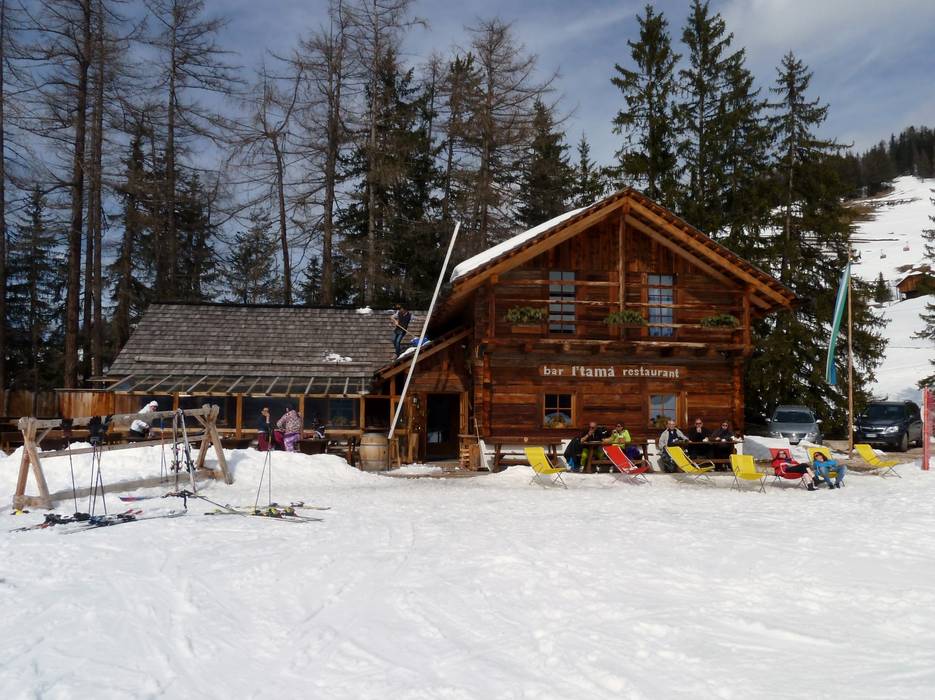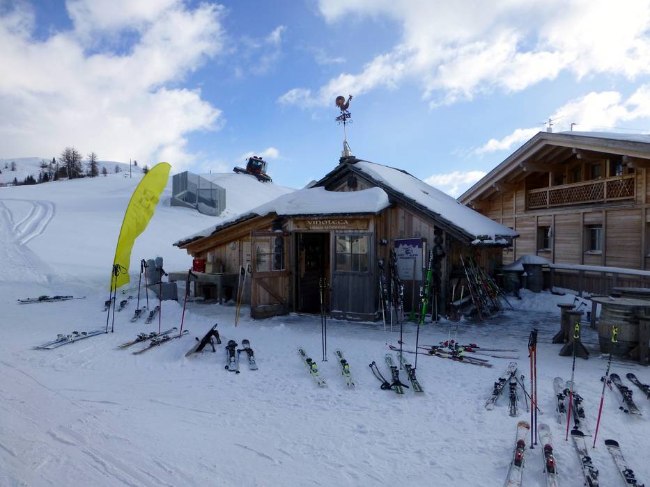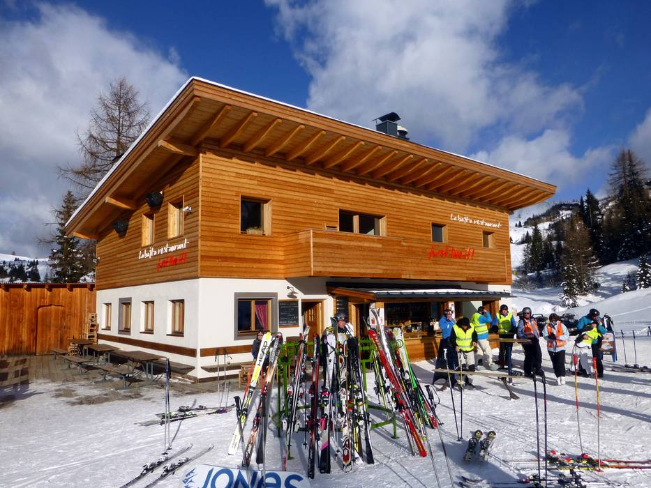 La cabane rustique est une halte gourmande prisée des skieurs. Sur la grande terrasse ou dans les stües ladines, on peut savourer des plats locaux typiques accompagnés d’un bon verre de vin. De plus, la Vinotecca séduit avec ses vins raffinés.