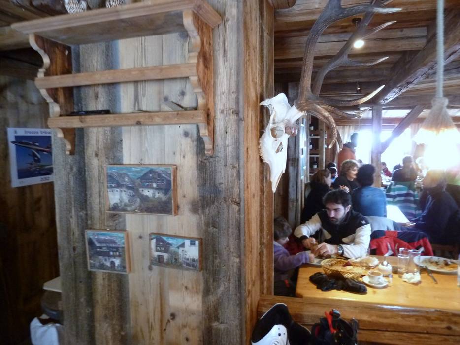 Le refuge est aménagé dans un style rustique et dispose d’une terrasse où l’on peut profiter du soleil à l’heure du déjeuner. La spécialité de la maison est la viande bio provenant de la ferme familiale. Fromage de chèvre, légumes marinés et speck du Tyrol du Sud complètent l’offre.