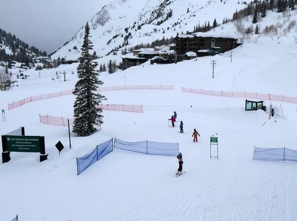 L'école de ski Alf Engen propose des cours de ski pour les enfants à partir de 4 ans. Le terrain d'entraînement avec tapis roulant se trouve à la station de vallée Albion Base.