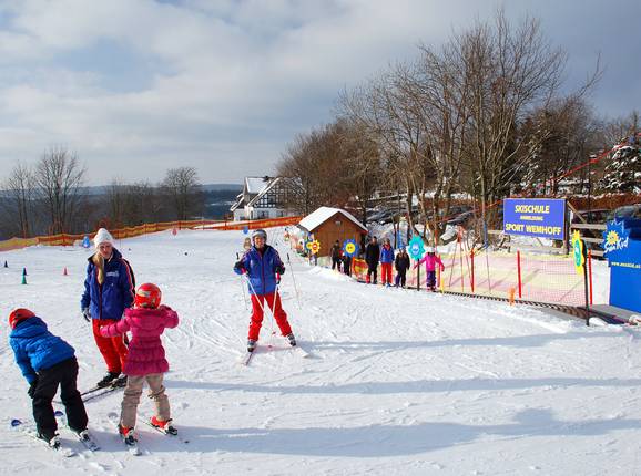 Pour les débutants, l'adresse incontournable est Sport Wemhoff, situé près du parking Kapellenhang. Vous y trouverez la location de skis et le bureau de l'école de ski. La zone pour débutants de l'école de ski se trouve juste en face. Elle est séparée du reste des pistes et dispose de son propre tapis roulant. Pour le niveau suivant, le Kapellenhang offre un terrain idéal. La descente vers la vallée jusqu'au Westfalenhang I est facile, mais la remontée en téléski l'est un peu moins. Il est donc préférable de rester d'abord au Sonnenhang et au Brüchetalhang.