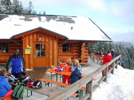 Les chalets sont tous assez petits, proposent une offre de plats très limitée et leur intérieur n’est pas toujours au goût du jour. Aucun ne mérite vraiment le nom de restaurant d’altitude. Mais ceux qui prennent la peine de traverser la route au-dessus du domaine skiable trouveront des restaurants très attrayants dans le village. On mange particulièrement bien à l’Astenkrone.