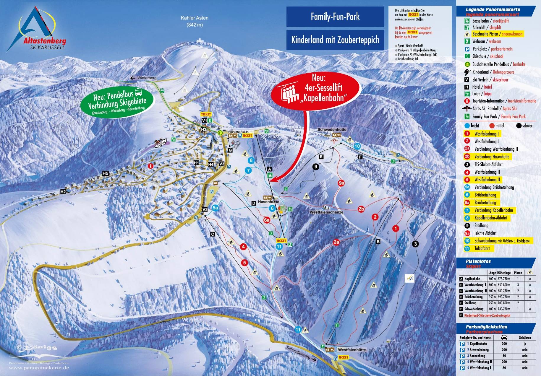 Indications de directions (plans, panneaux informatifs, signalisation) et sécurité sur le domaine skiable Altastenberg