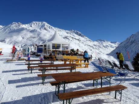Dans la SkiArena Andermatt-Sedrun, la journée de ski se termine soit sur la terrasse ensoleillée, soit lors de l'après-ski dans les bars de neige du domaine skiable, soit à l'une des stations de vallée.