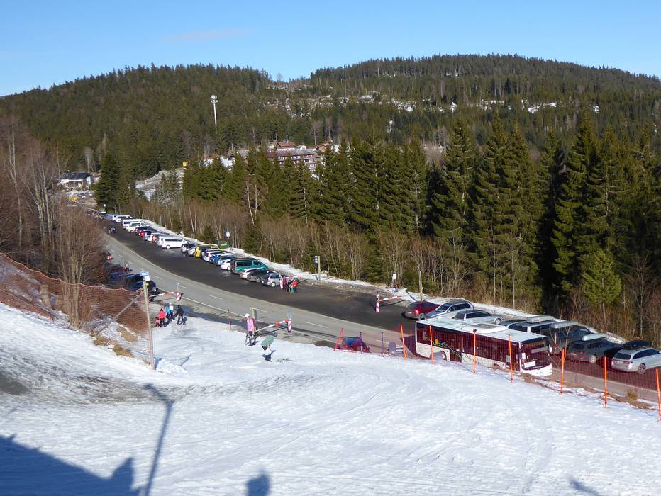Le Großer Arber se situe dans la Forêt de Bavière, en Bavière orientale, directement à la frontière avec la République tchèque. Depuis Passau, on atteint l’Arber en environ 1 heure, depuis Ratisbonne en environ 1h15 et depuis le nord de Munich en environ 2 heures. Les itinéraires passent par l’échangeur autoroutier de Deggendorf (A3 Passau-Ratisbonne/A92 Munich-Deggendorf) et, de là, on atteint l’Arber après environ 40 minutes. Un avantage est que les autoroutes sont généralement peu sujettes aux embouteillages. Les parkings se trouvent le long de la route départementale, légèrement en contrebas des remontées mécaniques du Großer Arber. Ils sont idéalement situés entre la télécabine/les télésièges et les remontées Thurnhof, permettant ainsi un accès direct aux deux zones d’entrée du domaine skiable.