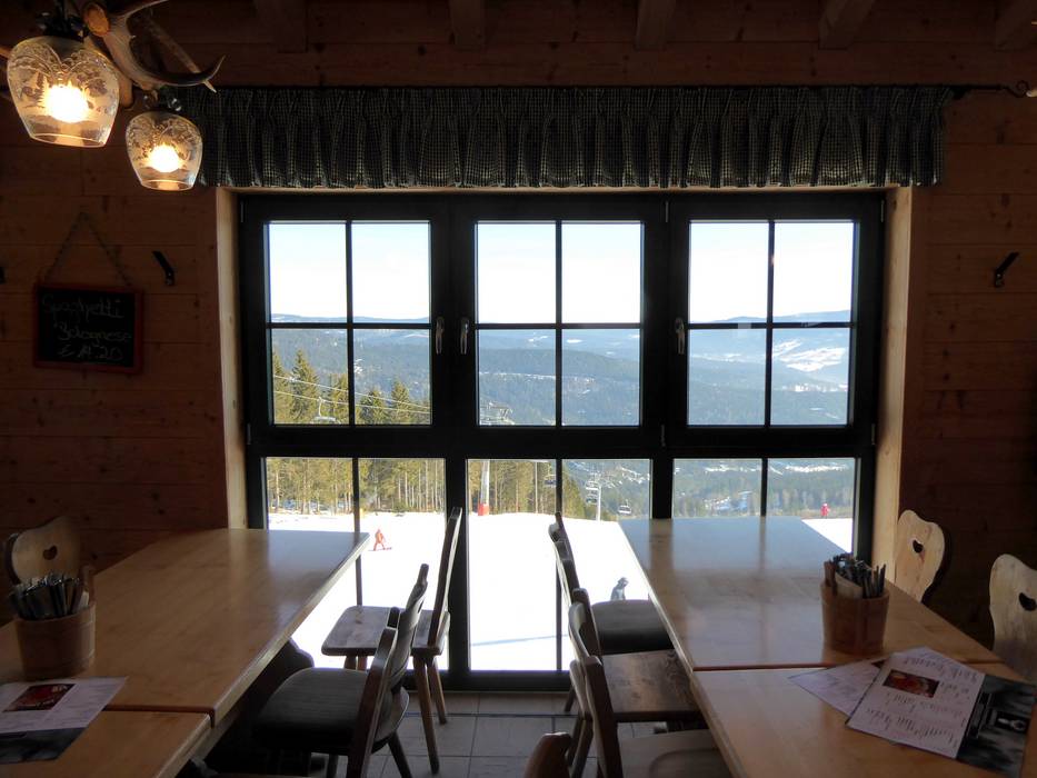 Le Arber Stadl se trouve directement sur la piste et invite à une pause conviviale. Il est également ouvert lors du ski nocturne et constitue le point de rencontre sur les pistes.
