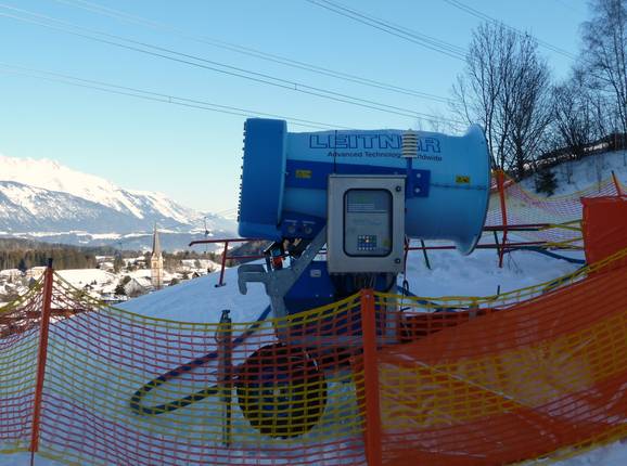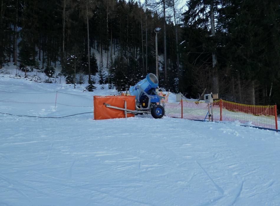 Le petit domaine skiable peut être entièrement enneigé artificiellement.