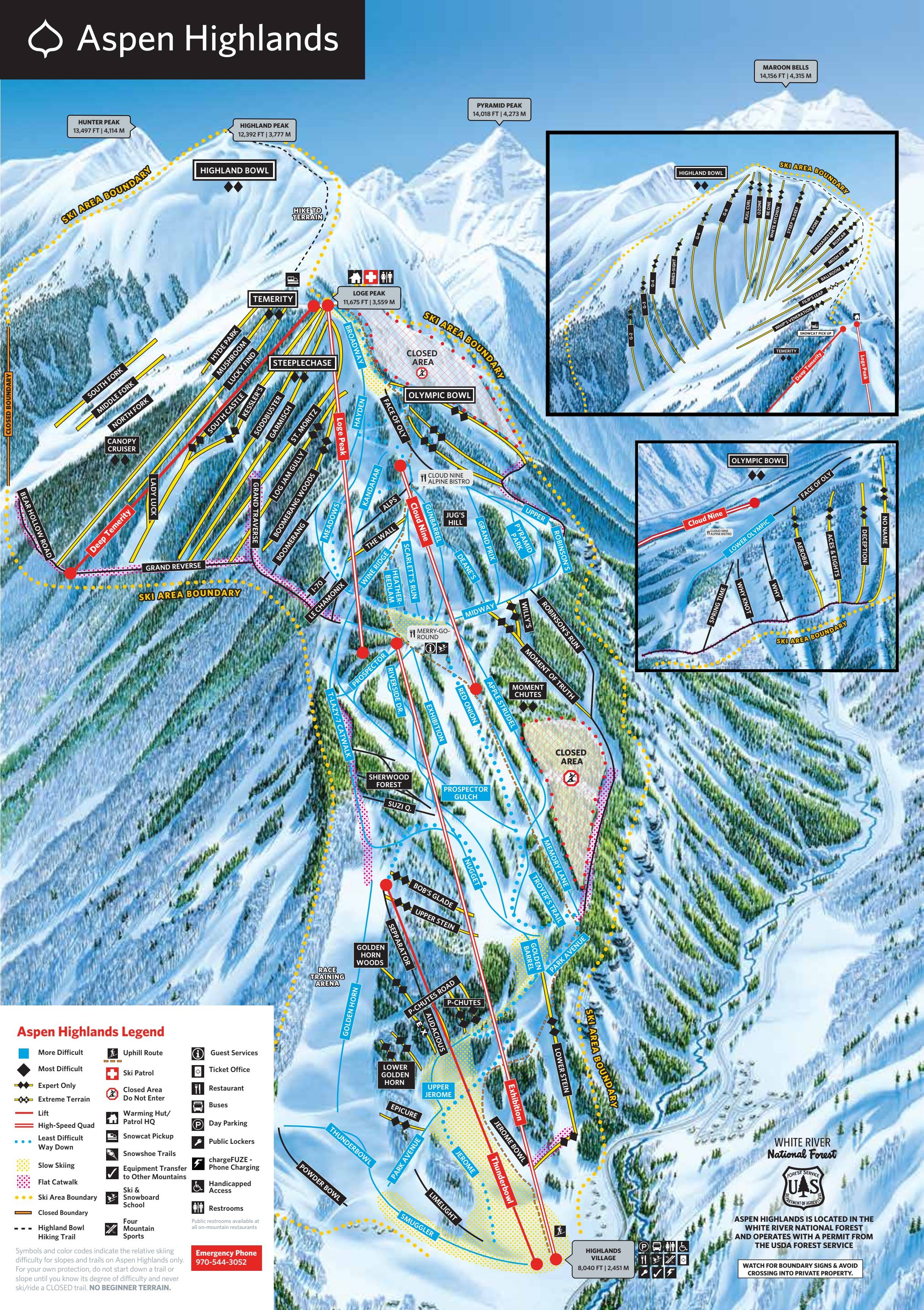 Plan des pistes Aspen Highlands Saison 2025/2026