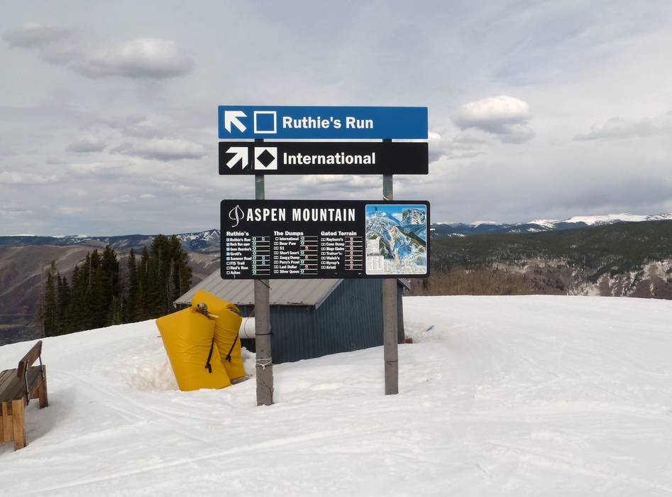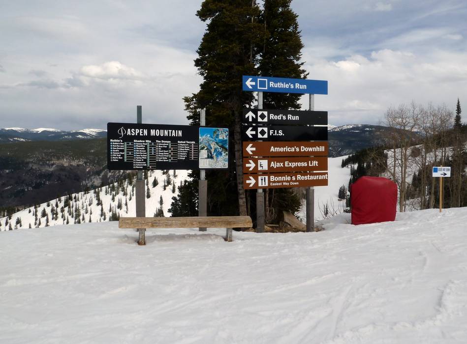 Indications de directions (plans, panneaux informatifs, signalisation) et sécurité sur le domaine skiable Aspen Mountain