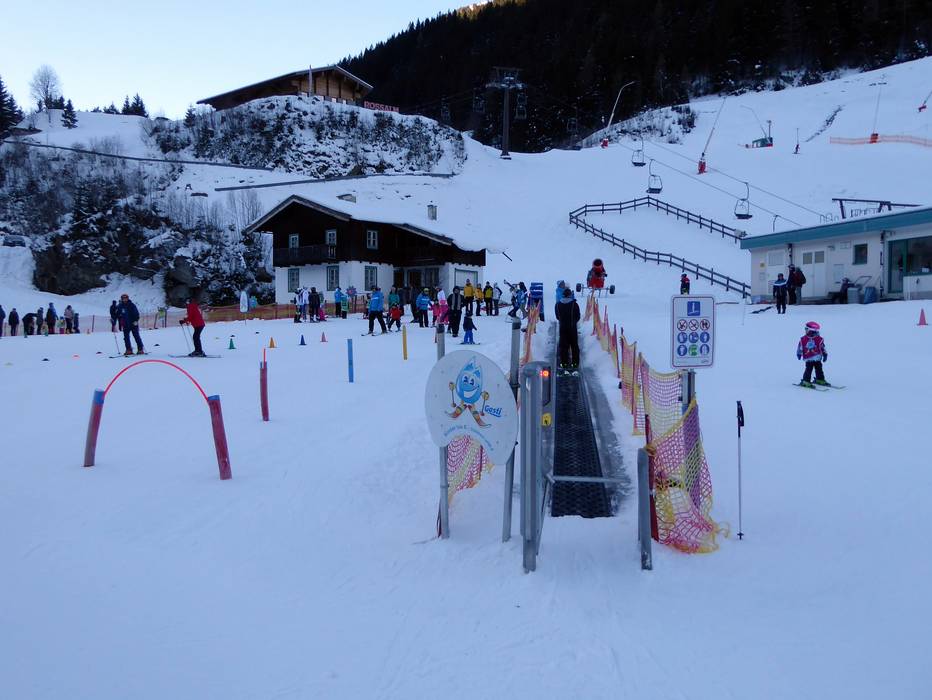 L'école de ski Schlossalm exploite dans la vallée à Bad Hofgastein un bel espace enfants avec des tapis roulants et de nombreux personnages amusants, en face de la Schlossalmbahn.
