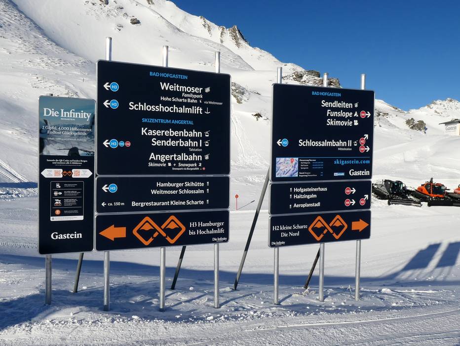 Des panneaux d'information panoramiques avec des informations actualisées se trouvent à toutes les stations de départ et d'arrivée ainsi qu'aux points clés du domaine skiable. Les panneaux panoramiques multimédias et les moniteurs sont très modernes. La signalisation est généralement très bonne. Les destinations importantes Bad Gastein, Bad Hofgastein et le Skizentrum Angertal sont très bien indiquées.