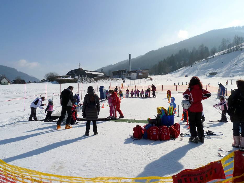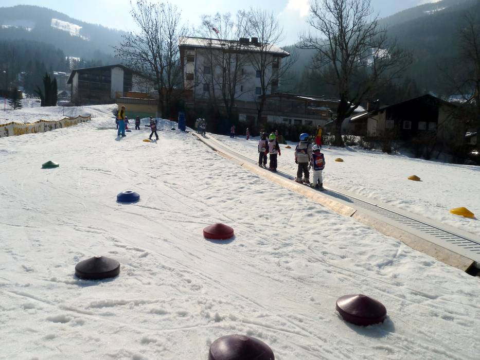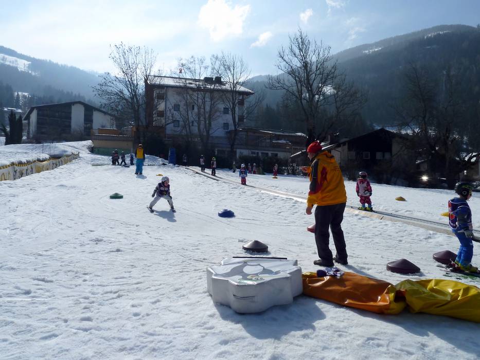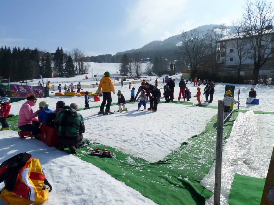À la station inférieure du Kaiserburgbahn se trouve le Kinderland de l'école de ski Brunner avec deux tapis roulants SunKid.