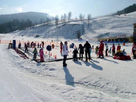 Bad Kleinkirchheim et St. Oswald sont très adaptés aux familles et aux enfants. Dans les deux stations, il existe plusieurs espaces enfants et remontées pour débutants. Grâce aux nombreuses offres pour les familles, le domaine skiable est une destination de voyage attrayante. À Bad Kleinkirchheim, il existe le Familien €uro, ce qui signifie que les familles bénéficient d’un forfait de ski pour les enfants à seulement un euro par jour à partir d’un certain nombre de jours de ski. À la station supérieure de la Nationalparkbahn Brunnach, la terrasse de jeux au NockIN propose du Nocktubing, des balades en luge magique et une piste de luge. Les pistes de luge sont également toujours très appréciées des plus petits.