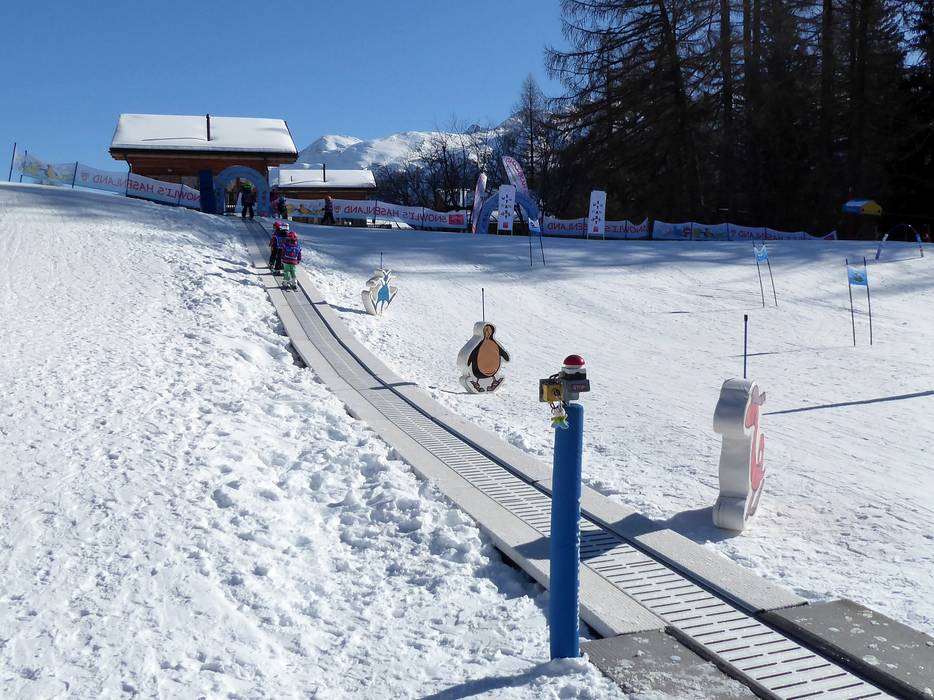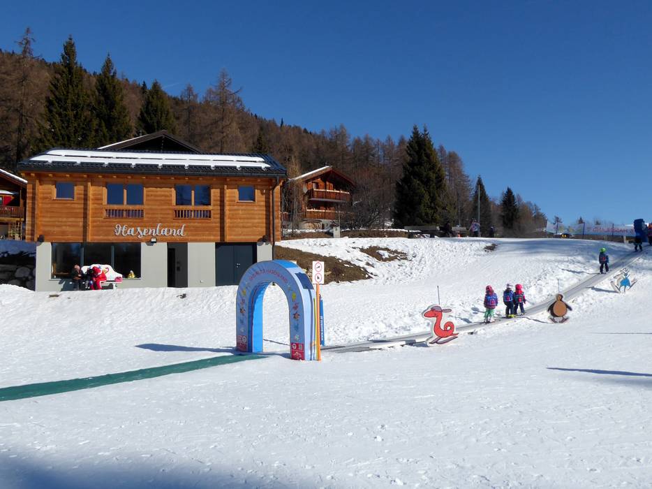 Dans le Hasenland de Snowli, à la station de vallée de Bellwald, les plus petits apprennent leurs premiers virages dans la neige. Un tapis roulant et un téléski à corde sont à leur disposition. De nombreux personnages amusants complètent l’offre. Pour la pause, direction le tipi.