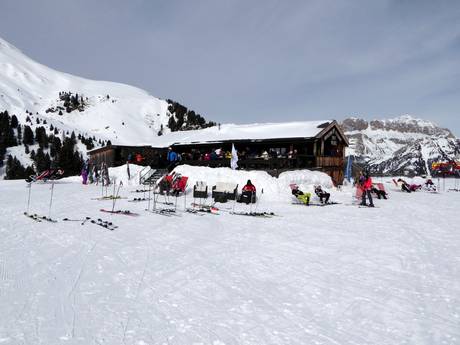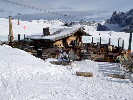 Le chalet rustique, construit principalement en bois, est idéal pour une pause. Des spécialités régionales et de bons vins y sont servis. Par beau temps, la terrasse ensoleillée séduit avec une vue magnifique jusqu'à la Marmolada et sur le Sassolungo.