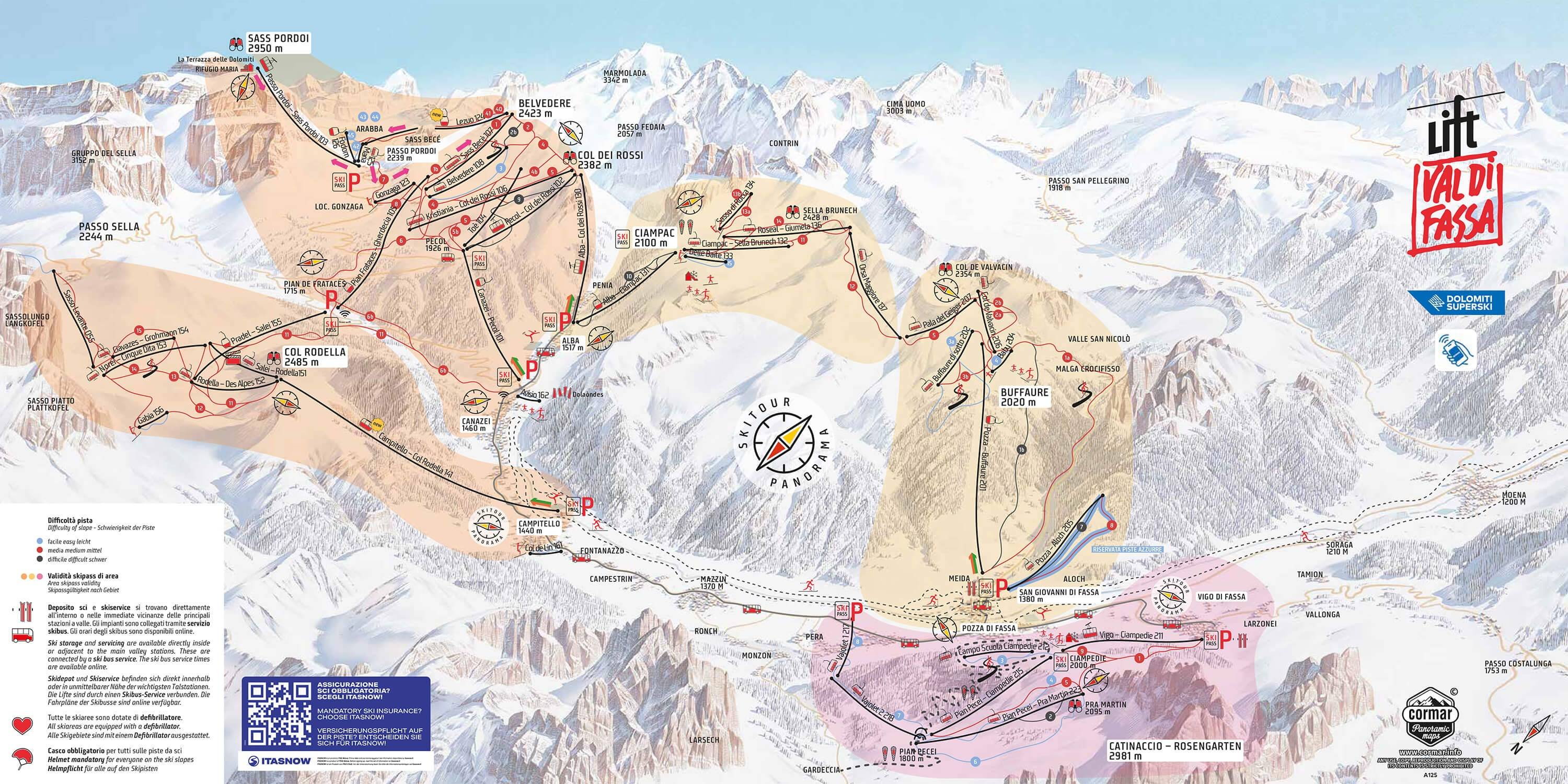 Plan des pistes Belvedere/Col Rodella/Ciampac/Buffaure – Canazei/Campitello/Alba/Pozza di Fassa Saison 2025/2026