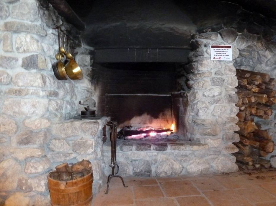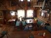 Chalet rustique et convivial avec cheminée ouverte et carte alléchante.