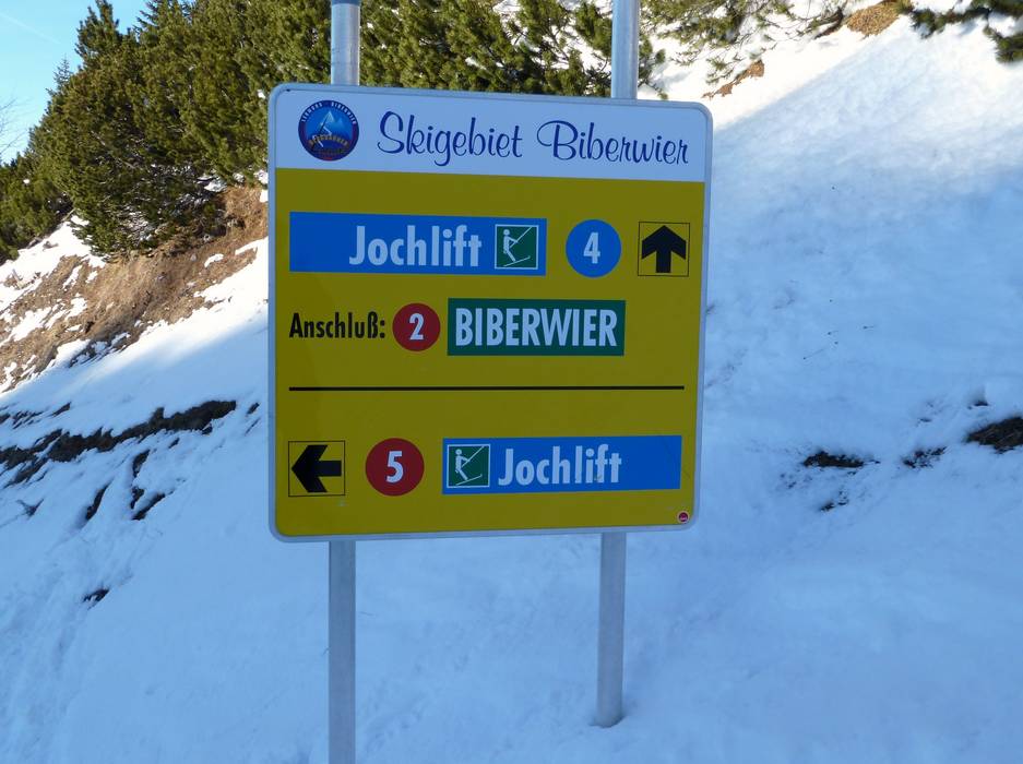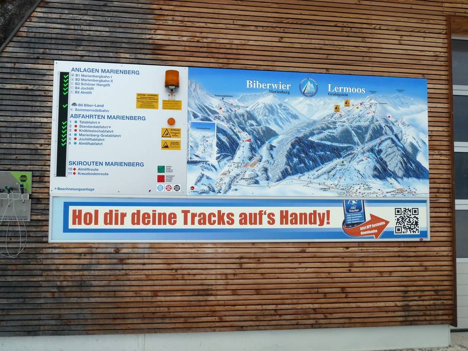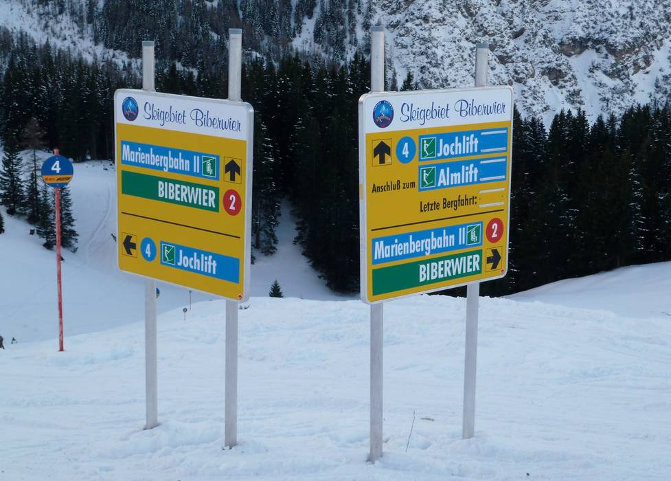Indications de directions (plans, panneaux informatifs, signalisation) et sécurité sur le domaine skiable Biberwier – Marienberg Plan des pistes et cartes des alentours