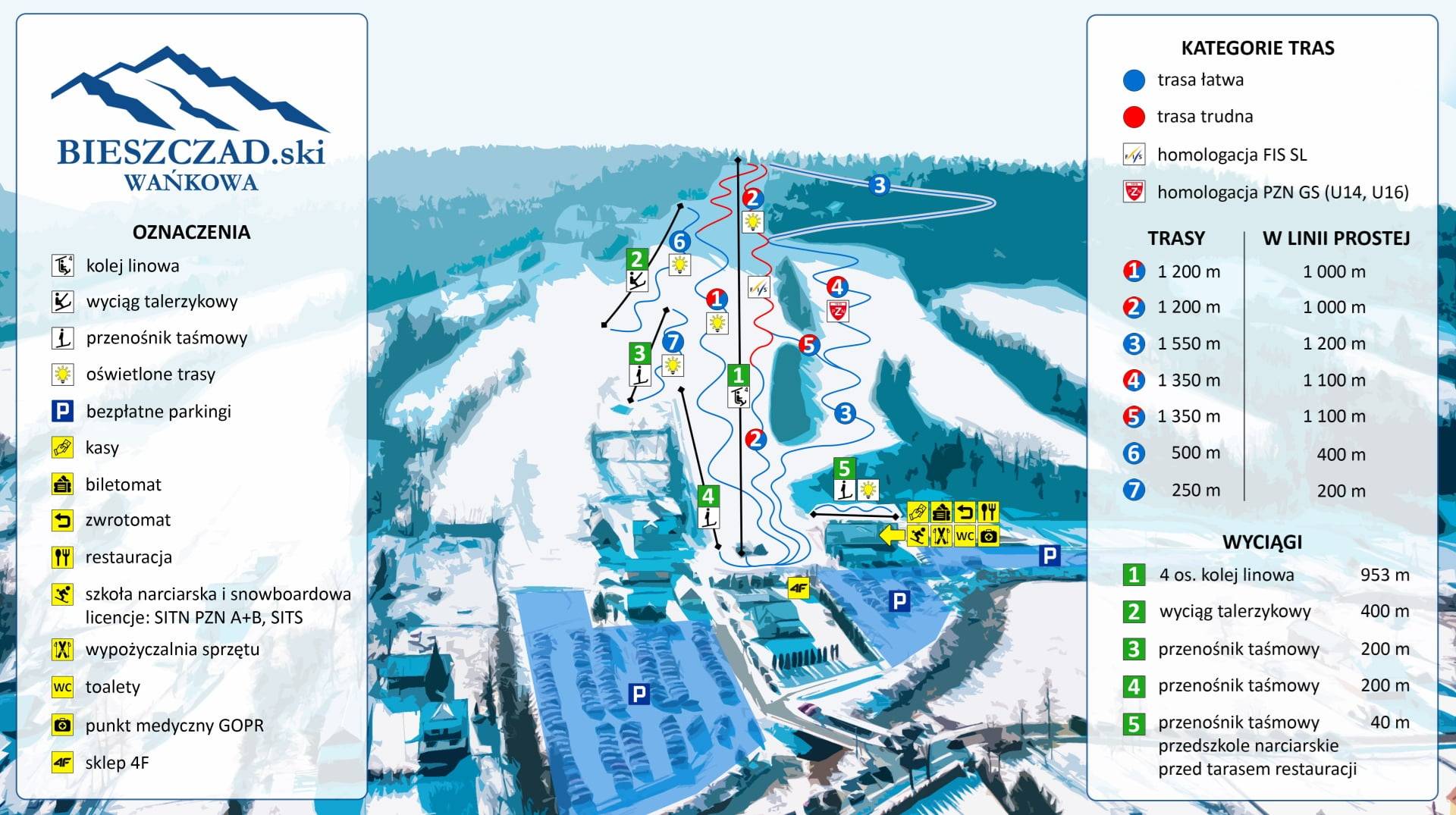 Plan des pistes Biezczadski Wańkowa Saison 2025/2026