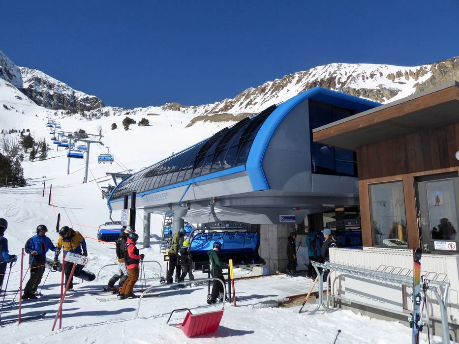 Le télésiège 6 places Powder Seeker est équipé de bulles de protection bleues. Il remplace le télésiège 3 places Lone Peak Triple.