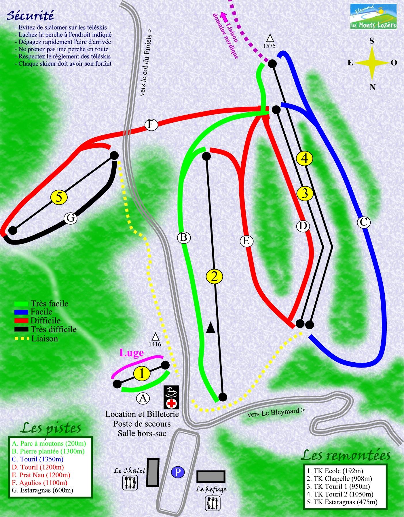 Plan des pistes Bleymard – Mont Lozère Saison 2024/2025