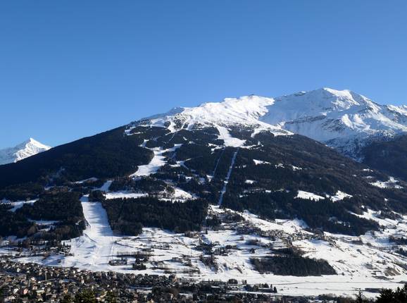 Le domaine skiable commence à la périphérie de Bormio (1 200 m). En passant par Bormio 2000 (1 945 m), le domaine s'étend jusqu'à Bormio 3000 (Cima Bianca 3 017 m). La différence d'altitude compte parmi les plus importantes d'Europe, avec environ 1 800 mètres de dénivelé. Le domaine skiable se situe au pied du Monte Vallecetta (3 148 m).