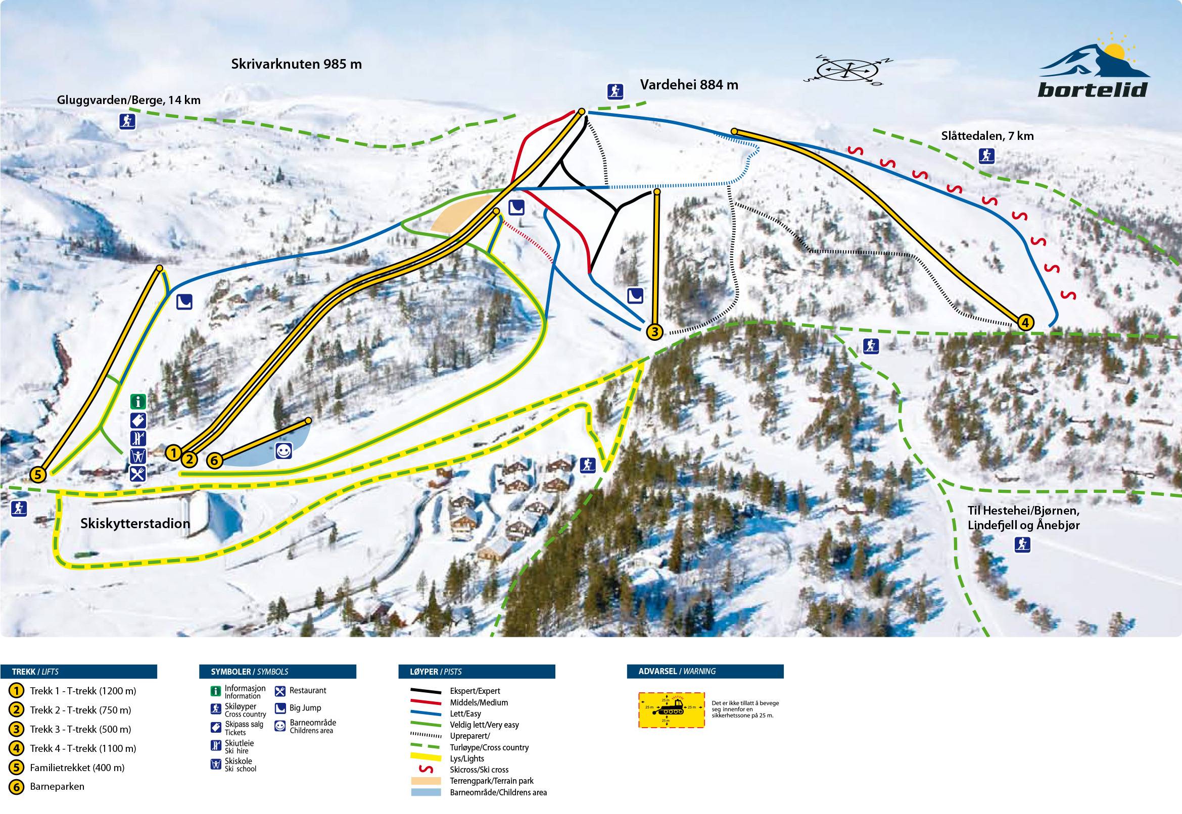 Plan des pistes Bortelid Alpinsenter Saison 2024/2025