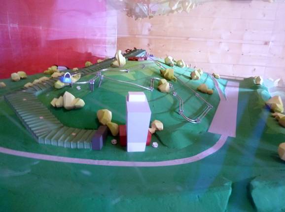 Il n'y a pas de véritable plan des pistes. À l'entrée, on trouve une maquette et une photo aérienne du hall de ski.
