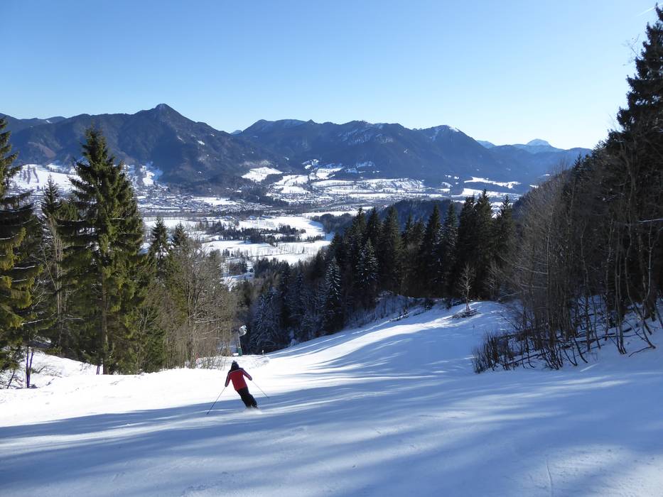 Les descentes jusqu’à la vallée mènent à Lenggries et Wegscheid : la piste noire de Coupe du monde à la Brauneckbahn et des descentes de vallée de difficulté moyenne vers Wegscheid.