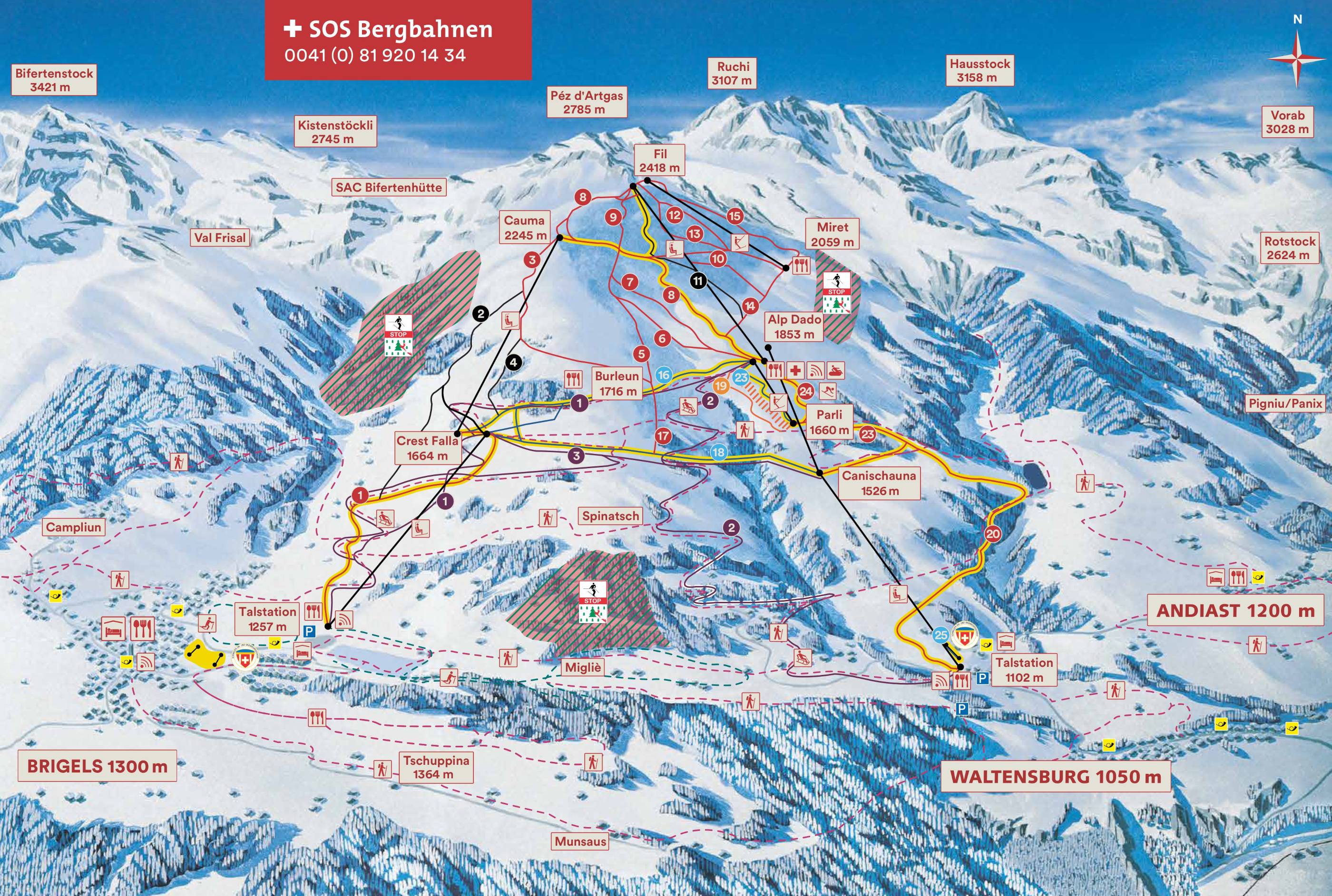 Plan des pistes Brigels/Waltensburg/Andiast Saison 2025/2026