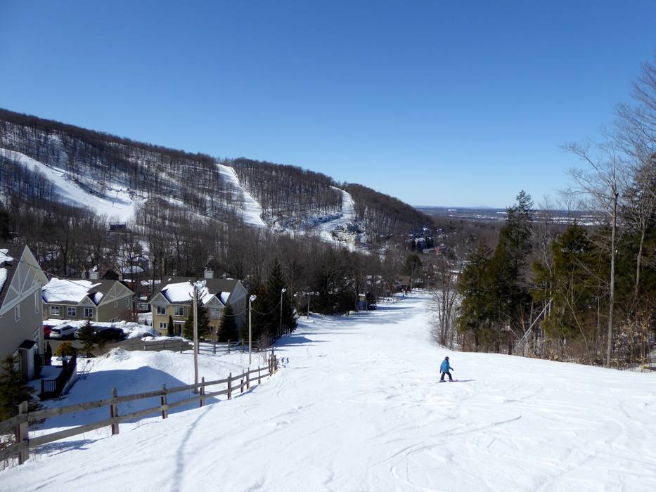 Les débutants peuvent parcourir l'ensemble du domaine skiable de Bromont sur des pistes très faciles et faciles. Dans la vallée, il y a une piste d'entraînement dédiée avec un tapis roulant. L'école de ski sur place accompagne les premiers virages.