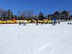 Dans le domaine skiable de Bromont, les familles avec enfants se sentent très à l’aise. De nombreuses pistes faciles et des pistes d’entraînement sont idéales pour les plus petits. Des descentes en forêt adaptées aux enfants et un excellent espace d’entraînement avec tapis roulant complètent l’offre. Les enfants peuvent être pris en charge au Daycare Bromont.