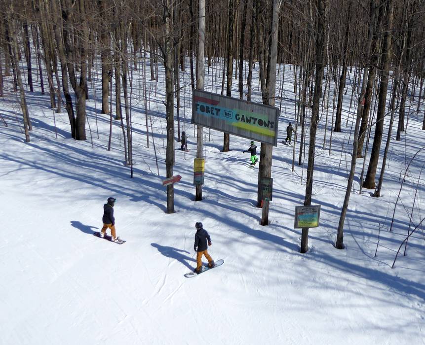 Le Grizzly's Trail se trouve sur la piste Calgary et est une descente en forêt avec des personnages amusants à travers la Forêt des Cantons. Ici, les enfants peuvent également très bien s'entraîner à skier dans les forêts déboisées.