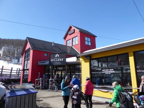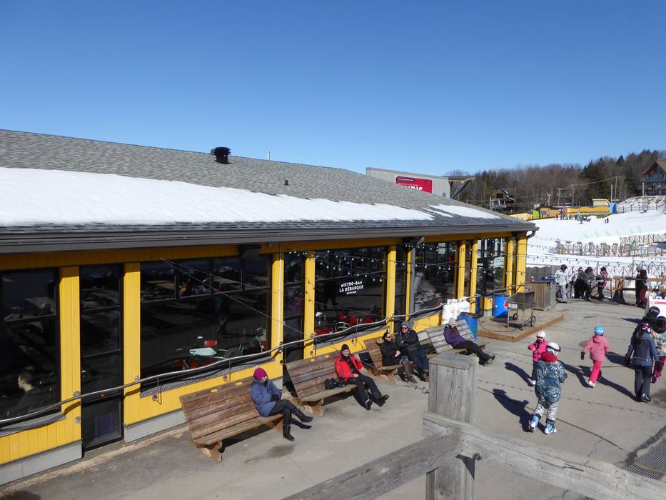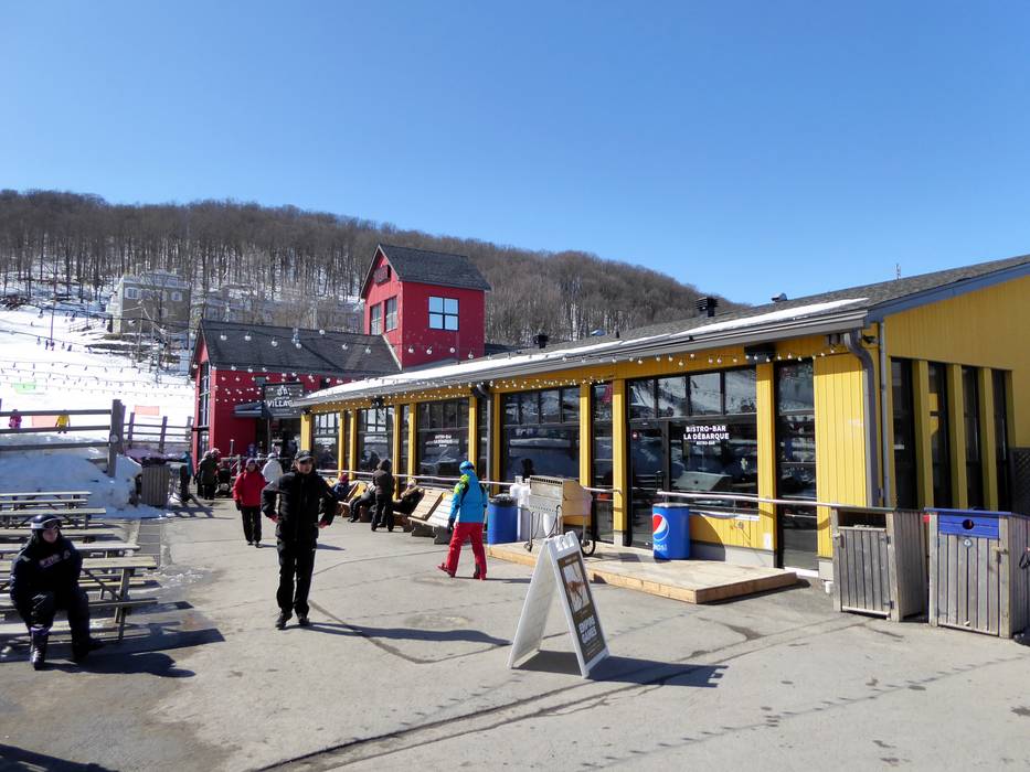 Dans la station de ski de Bromont, il est possible de faire une pause aux points stratégiques. Au sommet se trouve le Chalet du Sommet, offrant une vue magnifique sur le paysage. Les restaurants proposent généralement des plats canadiens et de l'eau gratuite est disponible en libre-service.