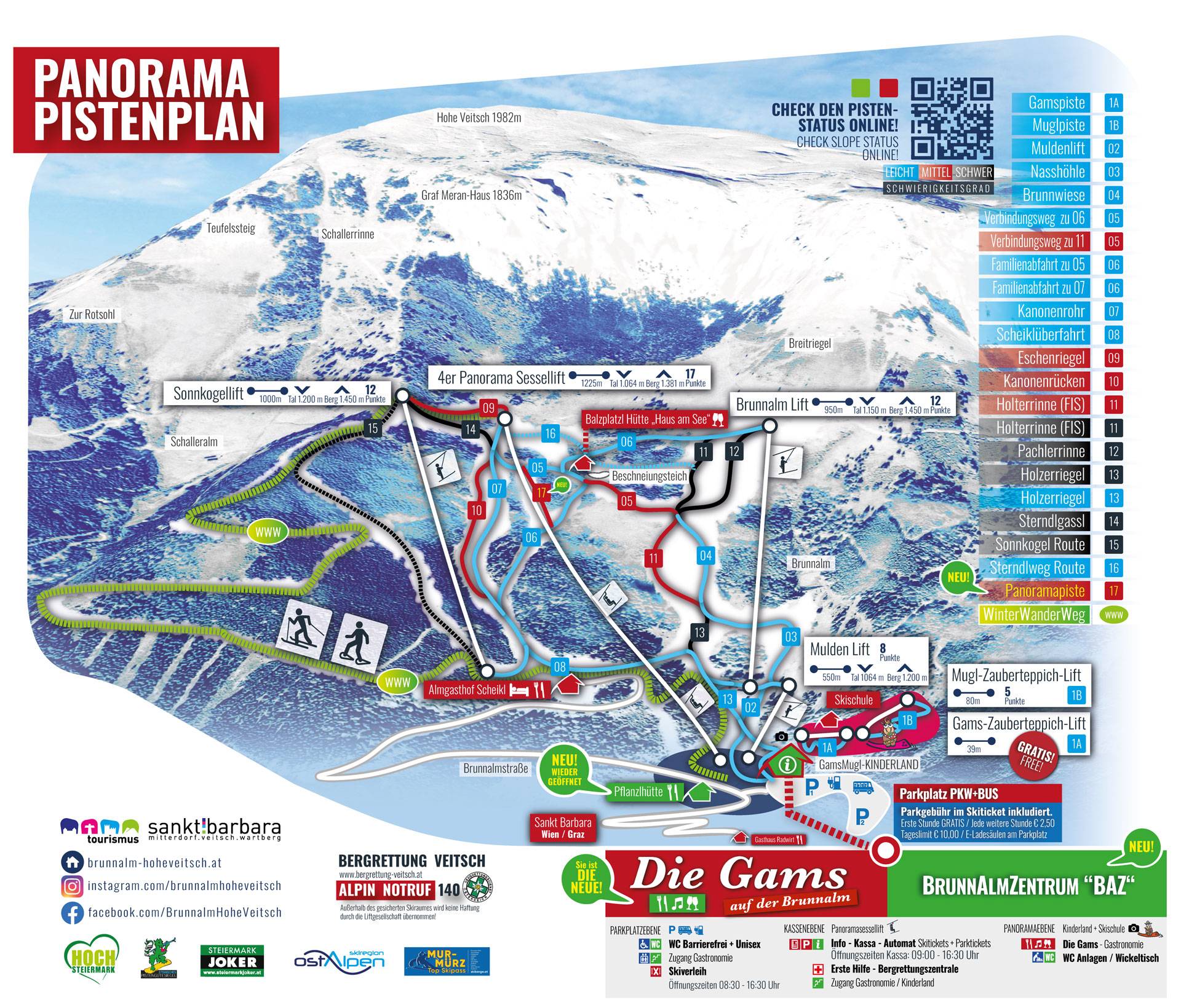 Plan des pistes Veitsch/Brunnalm/Hohe Veitsch Saison 2025/2026